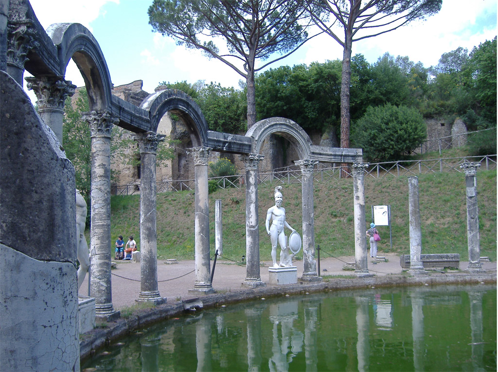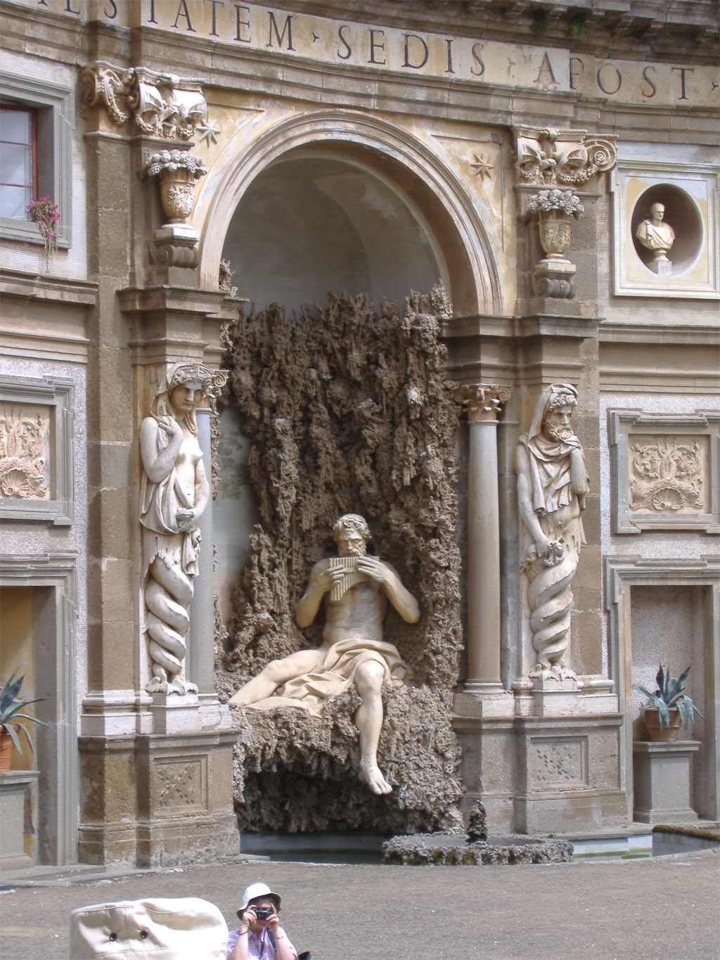 We were based at the Park Hotel, Grottaferrata near Frascati, where the horticultural inspiration for the gardens was drawn somewhat tenuously from those of Imperial Rome, complete with copious fountains and dubious statuary. Our visit to the archaeological site of Hadrian’s Villa c118 AD near Tivoli provided us with the authentic model and, although the excavations are still continuing in this huge area set among ancient olive trees, we were able to imagine the sheer scale and opulence of the gardens. These would have been enclosed by high walls, thus conserving their privacy and exclusivity. They featured pools and canals once richly decorated with columns and arcades, their schema inspired by Greek culture and frequently indicating personal triumphs or preoccupations, all of which reflected glory on the emperor. We were to recognize these two concepts of privilege and self-reference within the sixteenth-century villas and gardens we visited in Lazio. Furthermore, we were to discover in them the sheer scale of the building activity stemming from the optimism that had been generated by the return of the papacy to Rome in 1420.